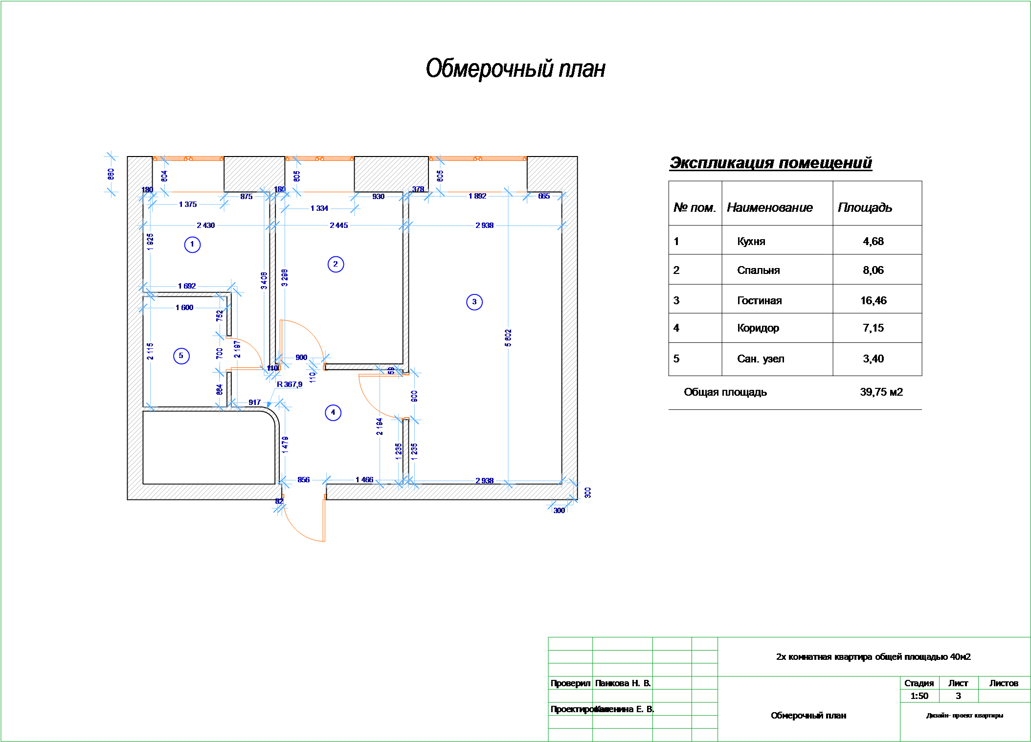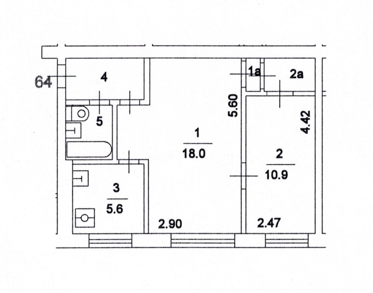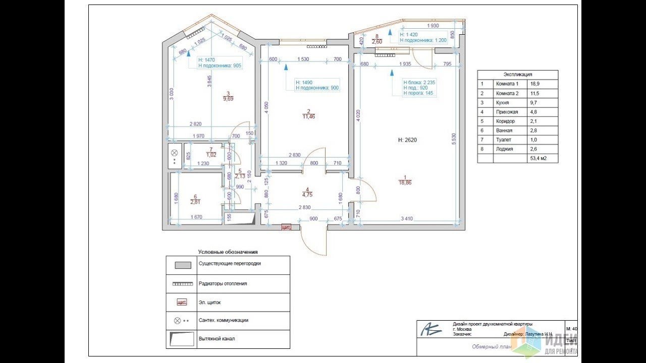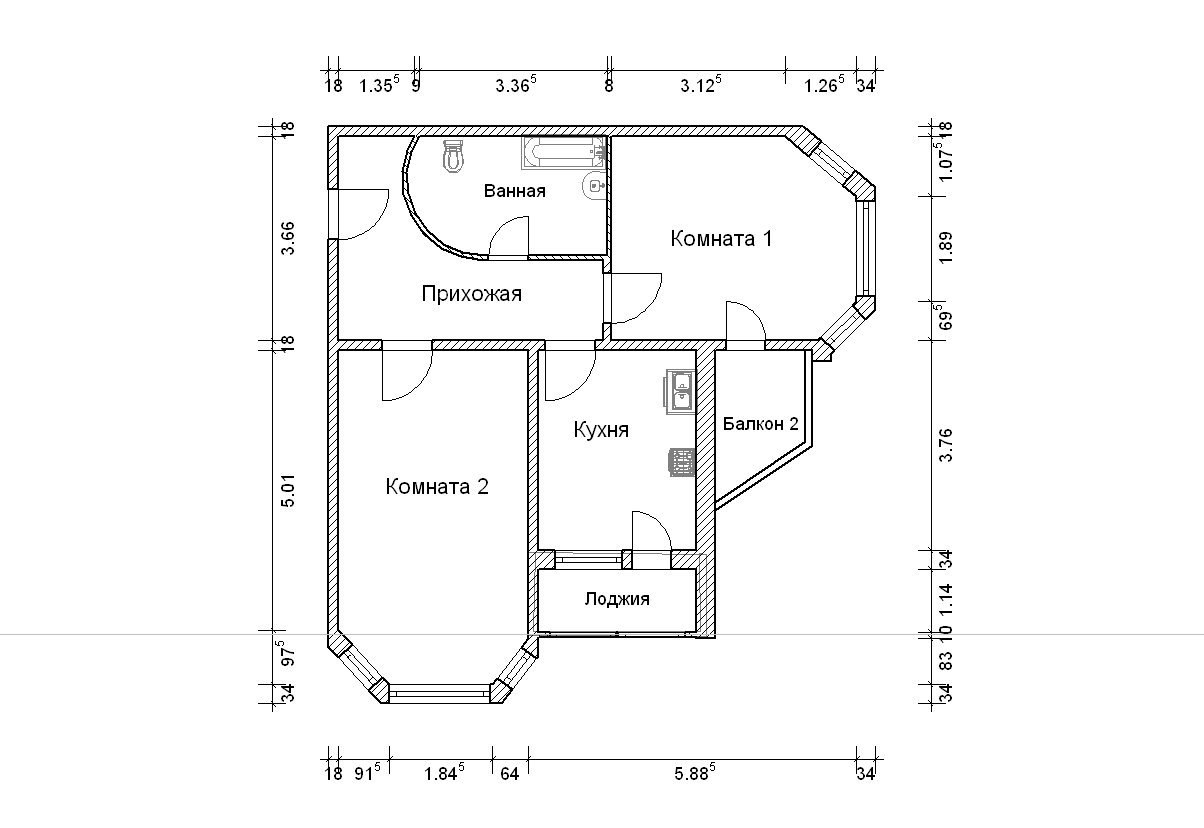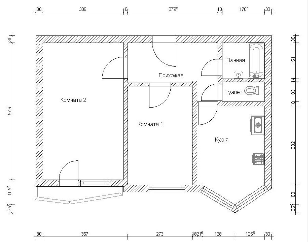 Обмерный план 2-х комнатной квартиры