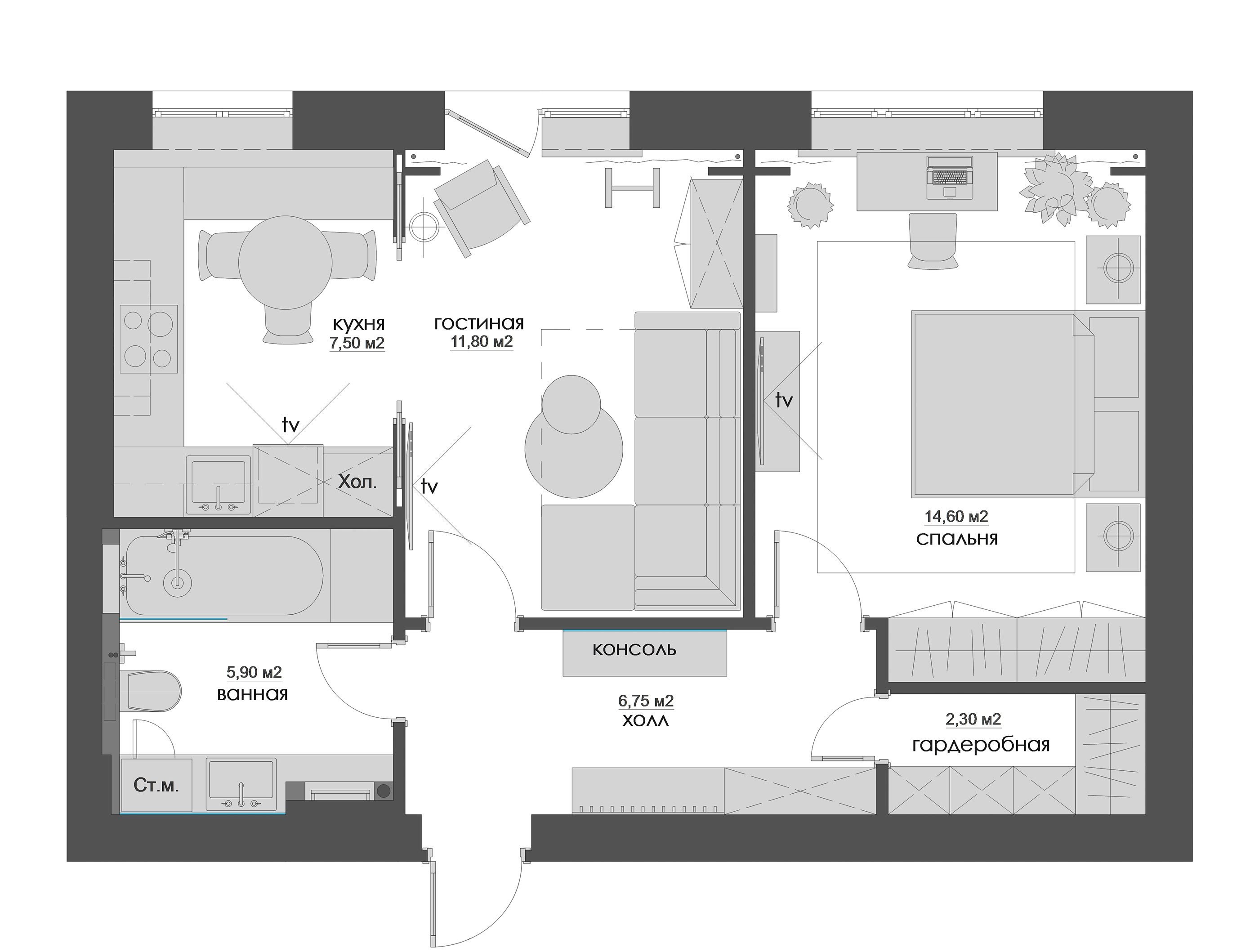 Планировка гостиная 60м2