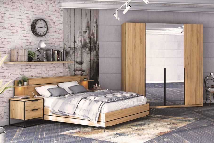 Кровать двуспальная 1600 Норд (дуб золотой)