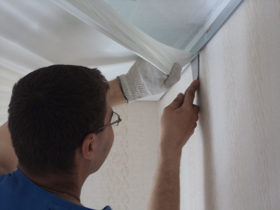Монтаж полотна натяжного потолка