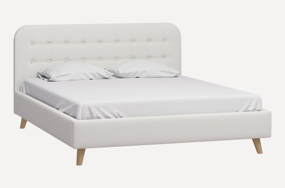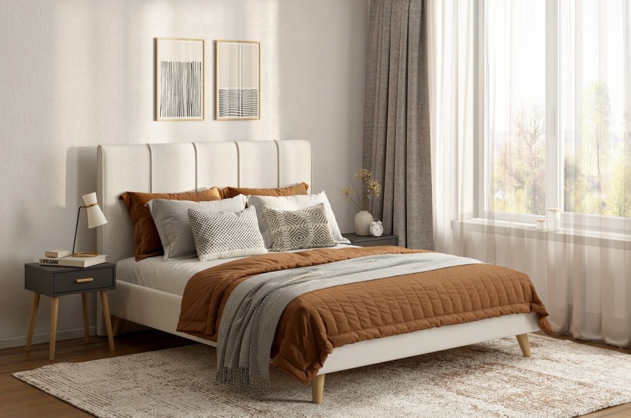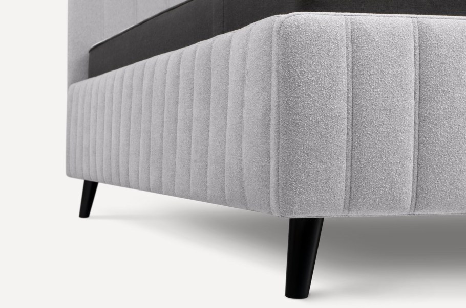 Стильная кровать в рогожке серая