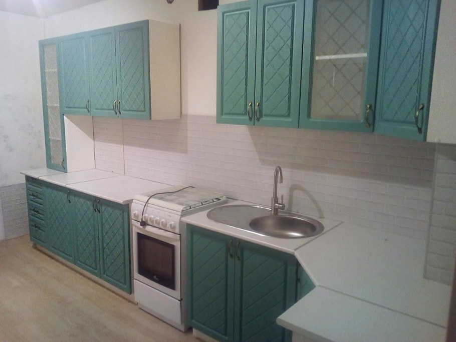 Кухонный гарнитур Милана 2000, патина голубая/ Сандал белый