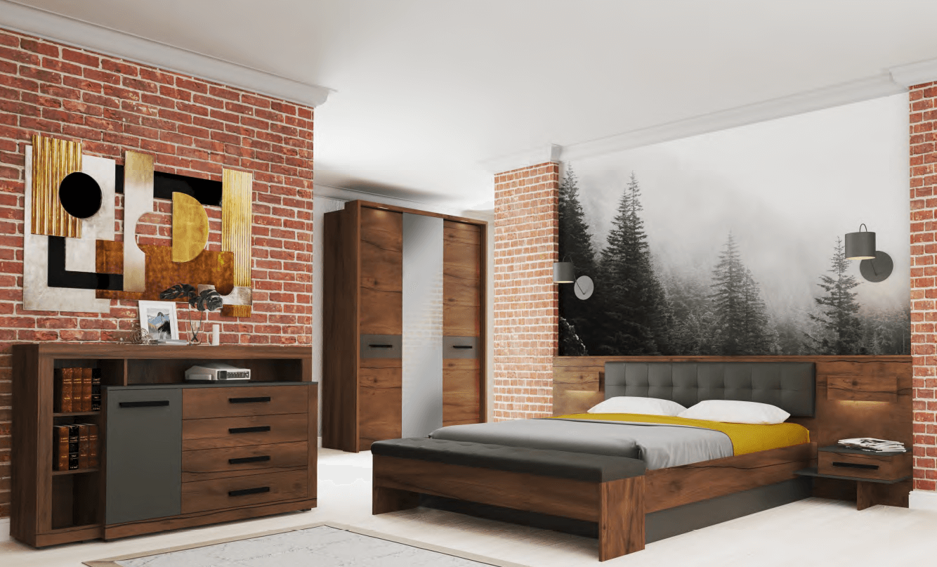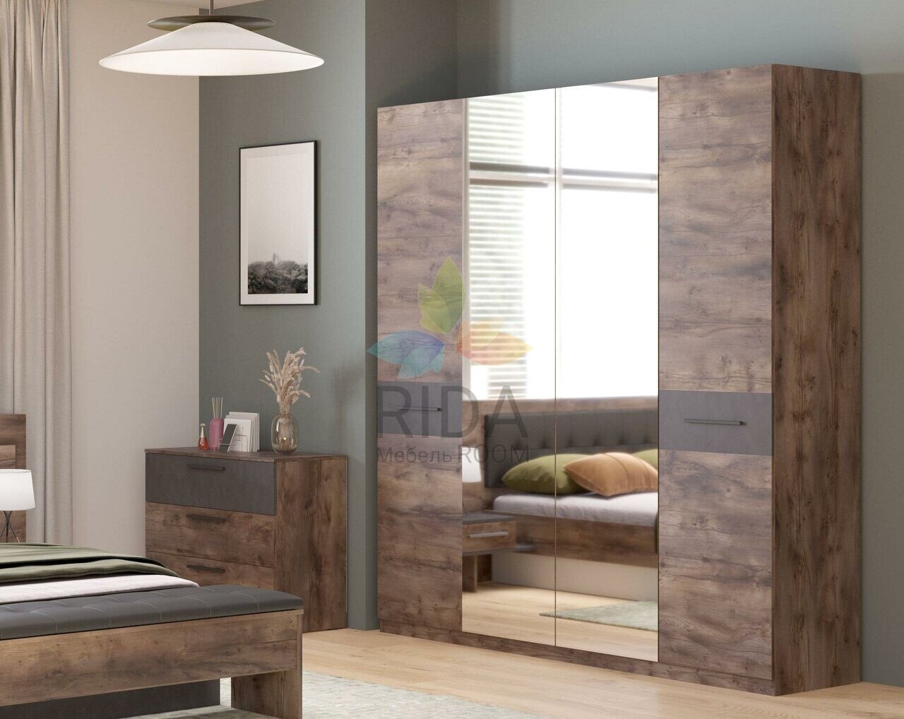 Модульная спальня "Либерти", дуб крафт золотой/антрацит