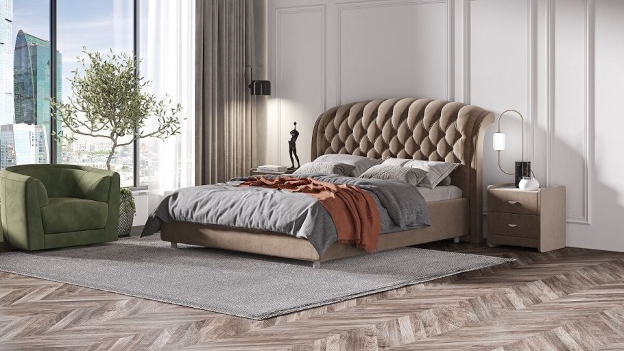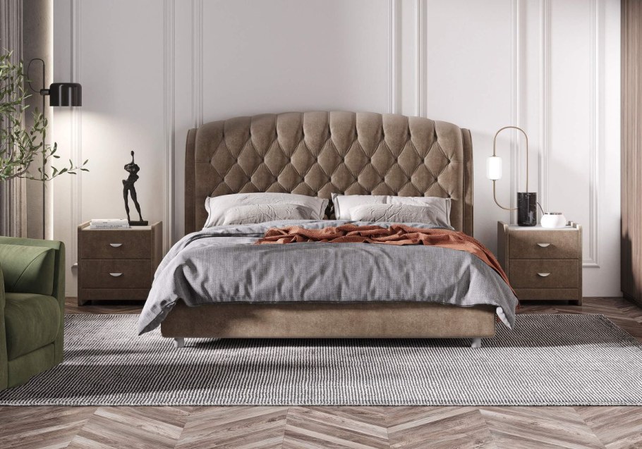 Кровать tov Furniture Reed Navy Velvet Tufted