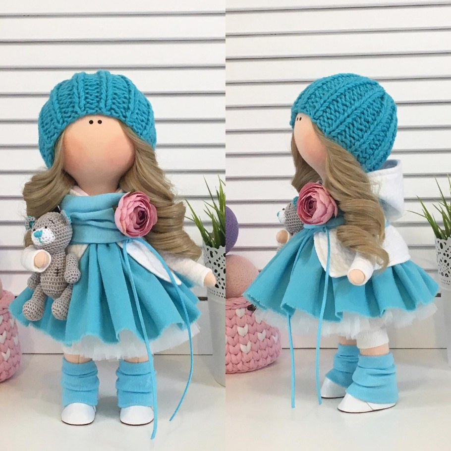 Интерьерная кукла в голубом