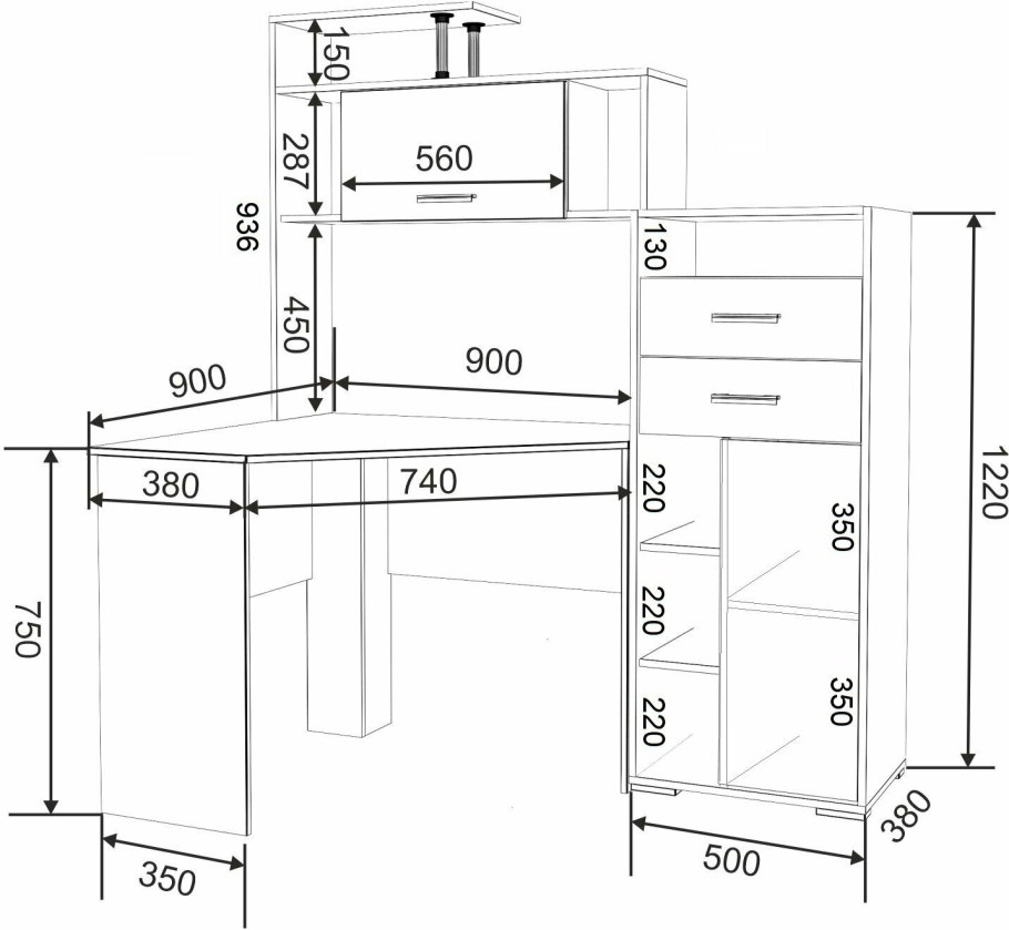 Стол компьютерный Homeoffice (белый, 1200х550х964 мм)